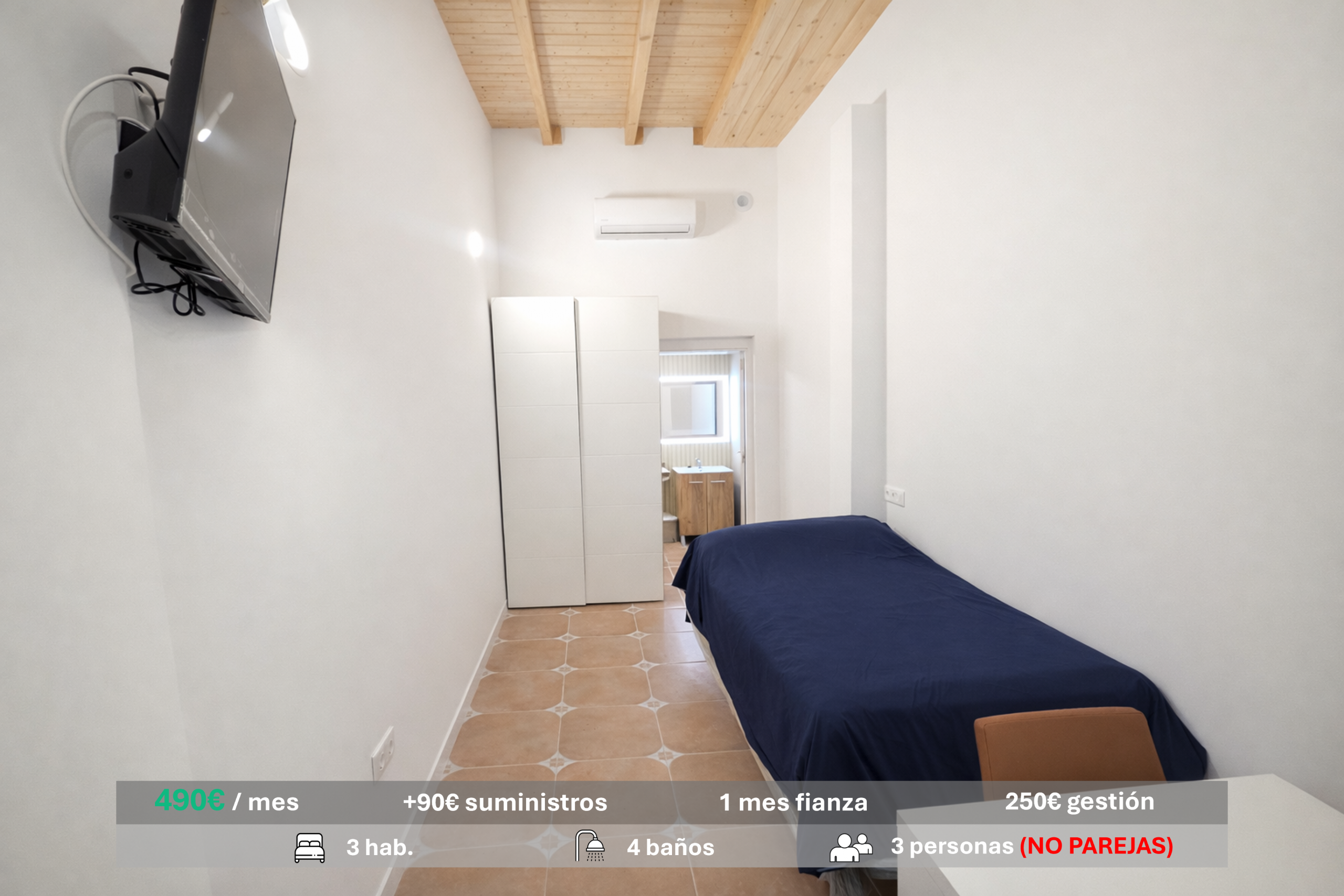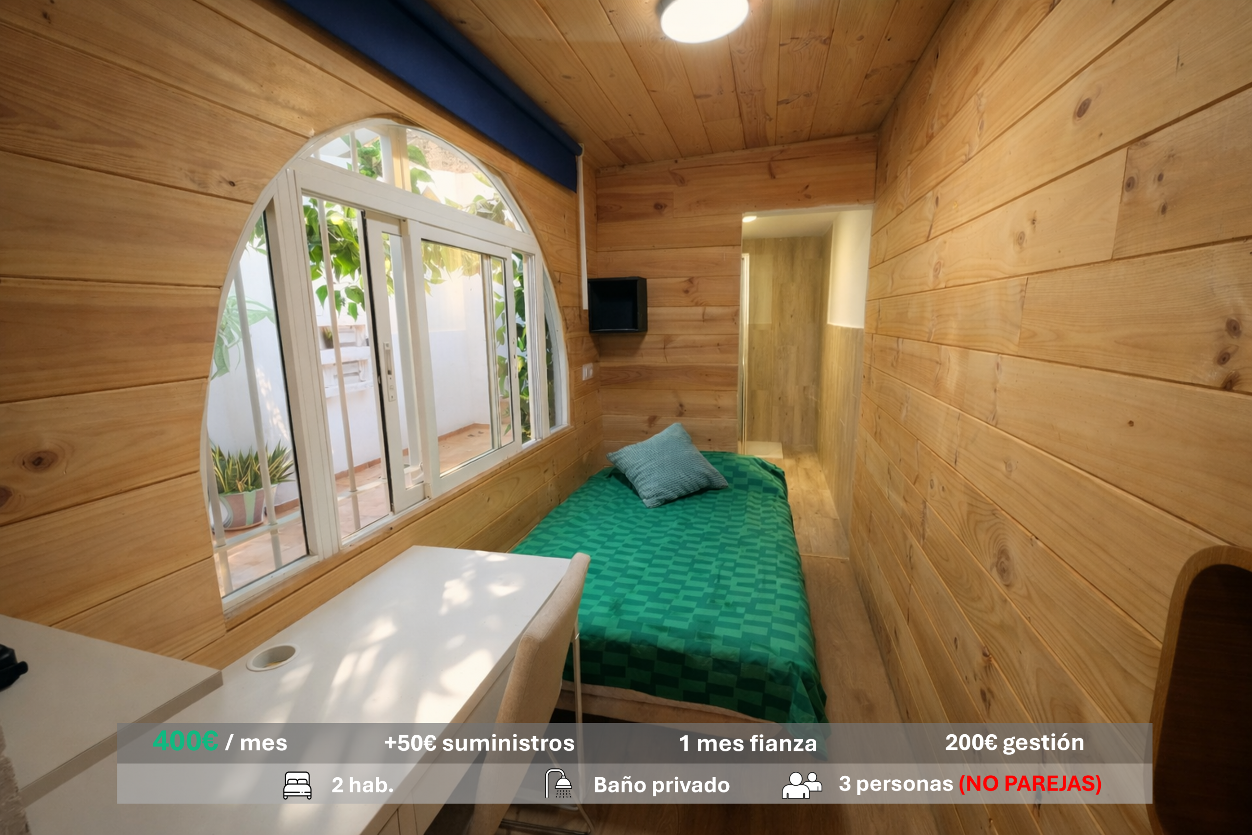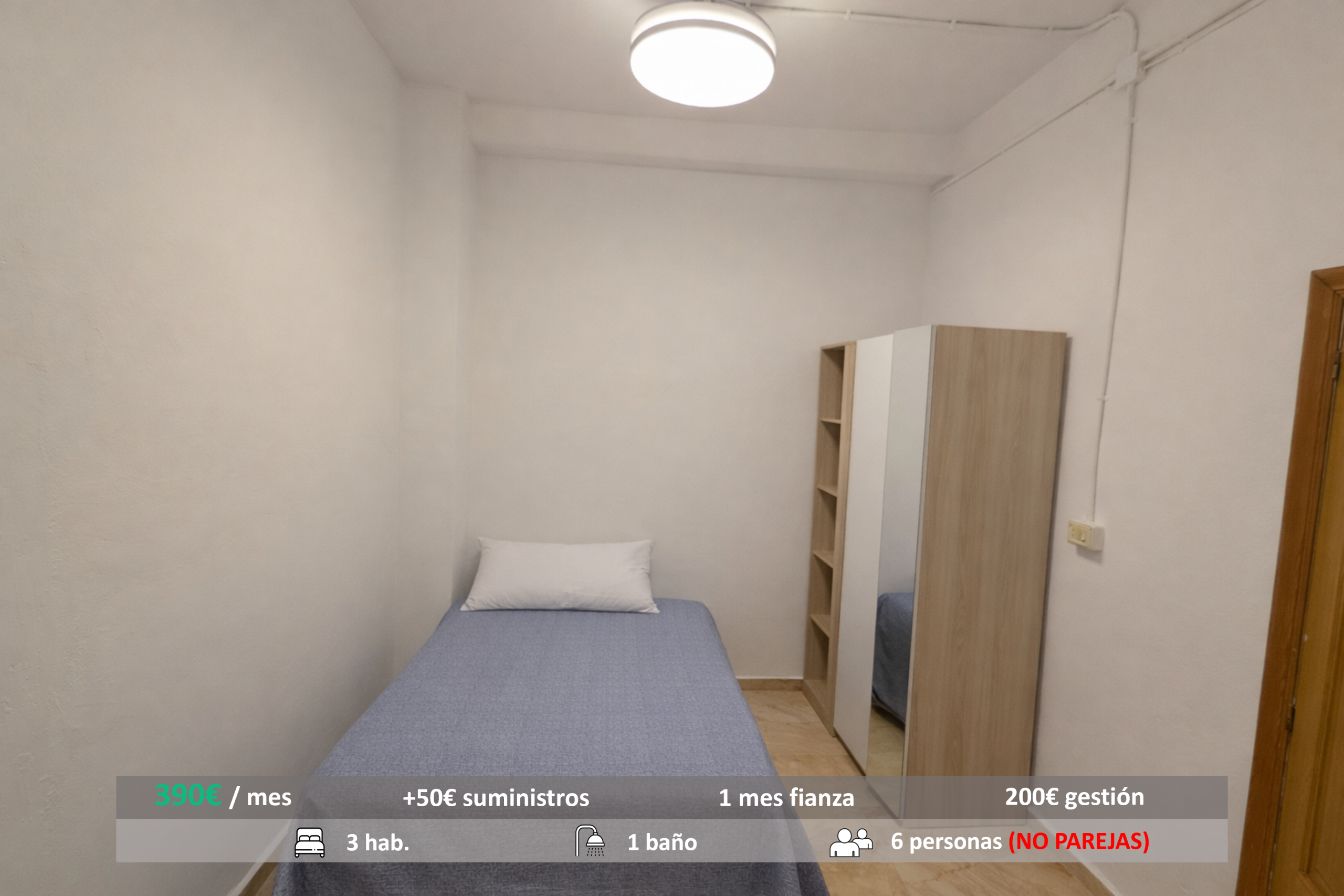 C/Padre Rico, 14. Habitación interior con cama matrimonio 135 cm. Solo chicas.
