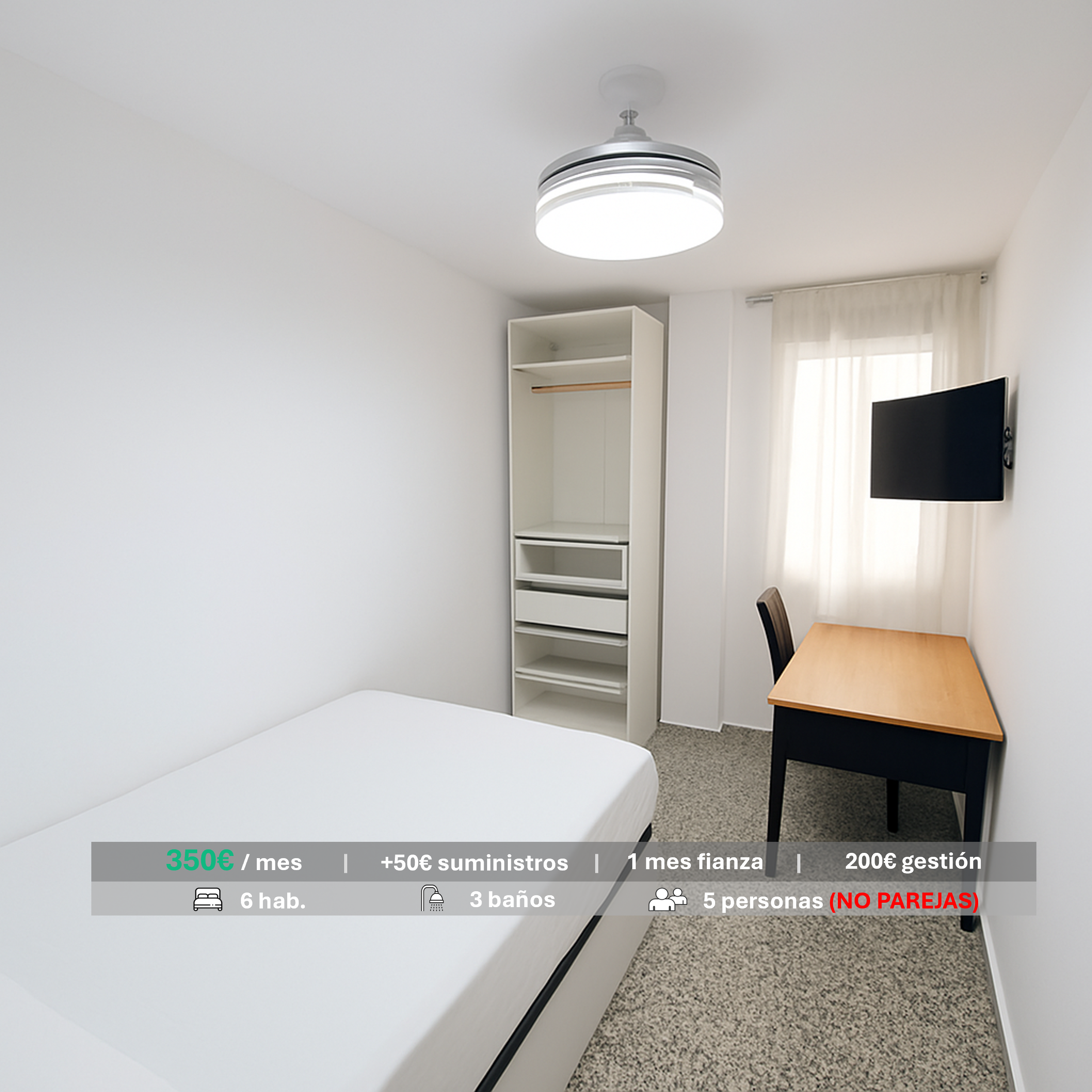 Avda Burjassot, 103. Habitación solo chicas con: TV y escritorio.