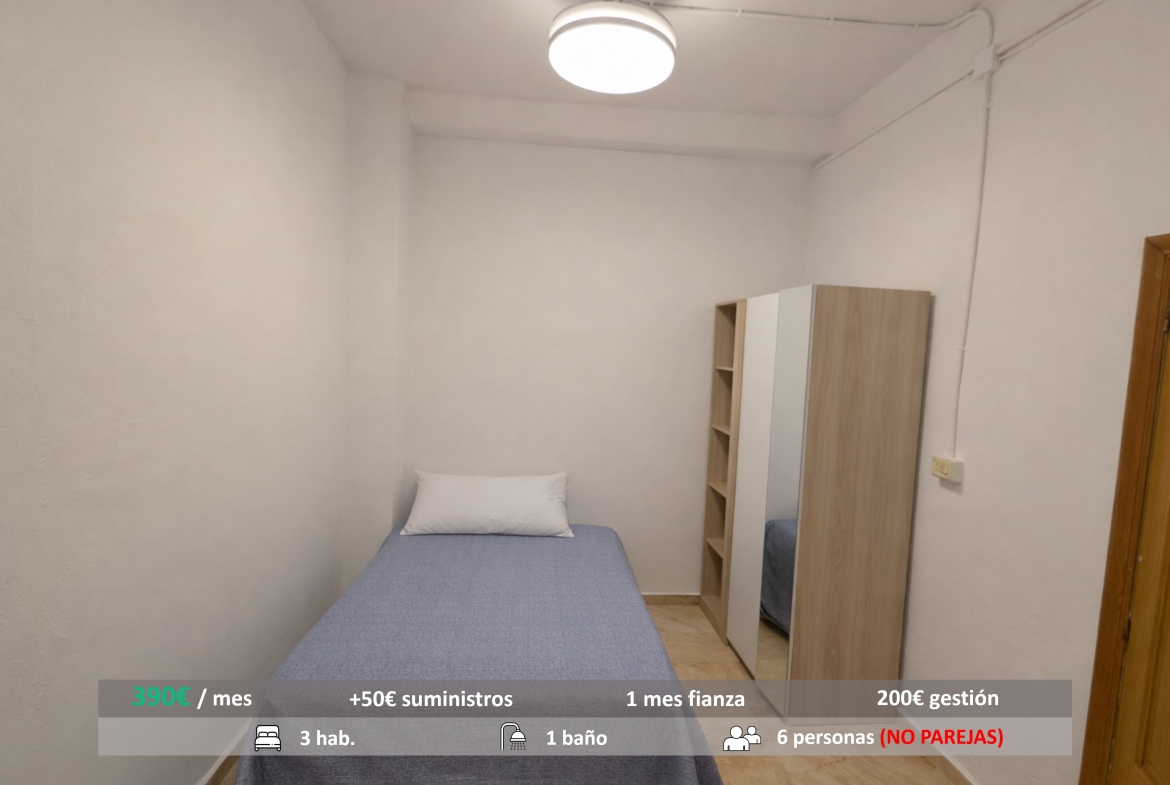 Precio: 390 €/mes · Fianza según estancia.