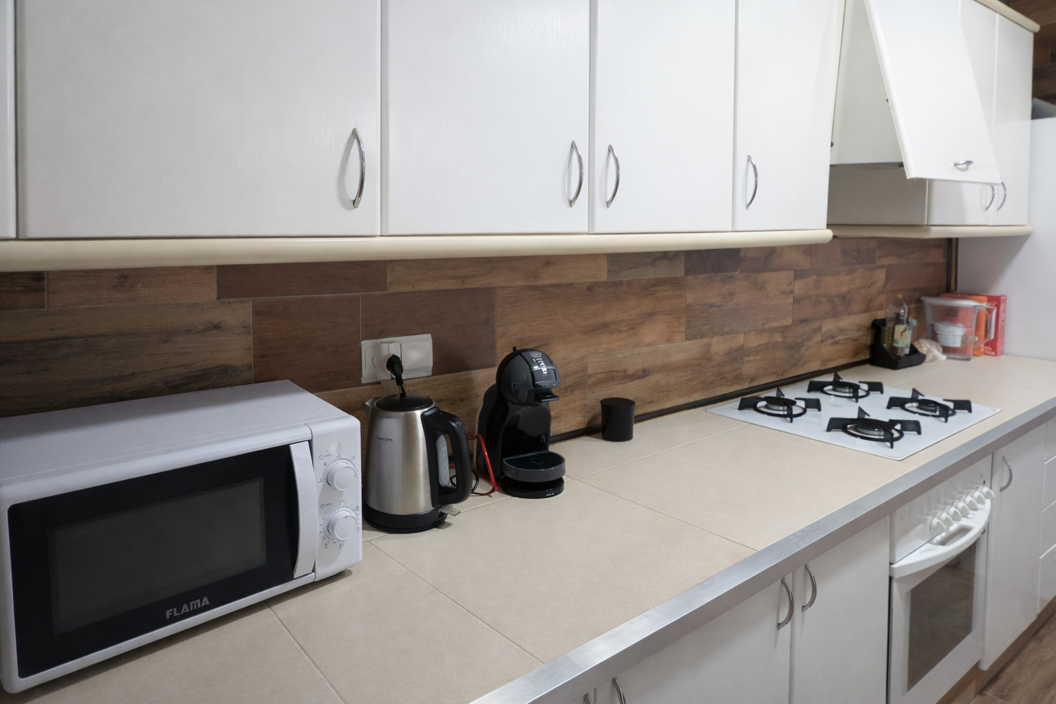 - ✓ Cocina equipada (Cocina gas, nevera, microondas, horno..)