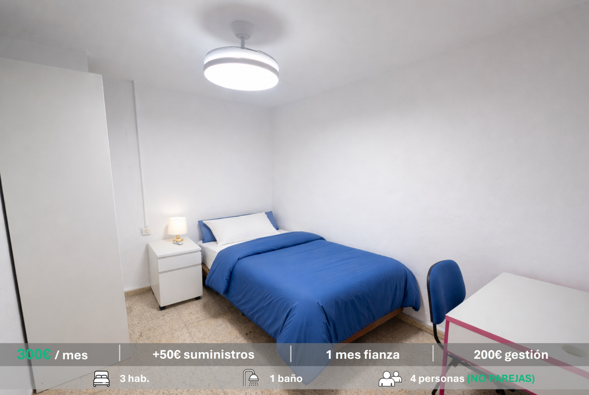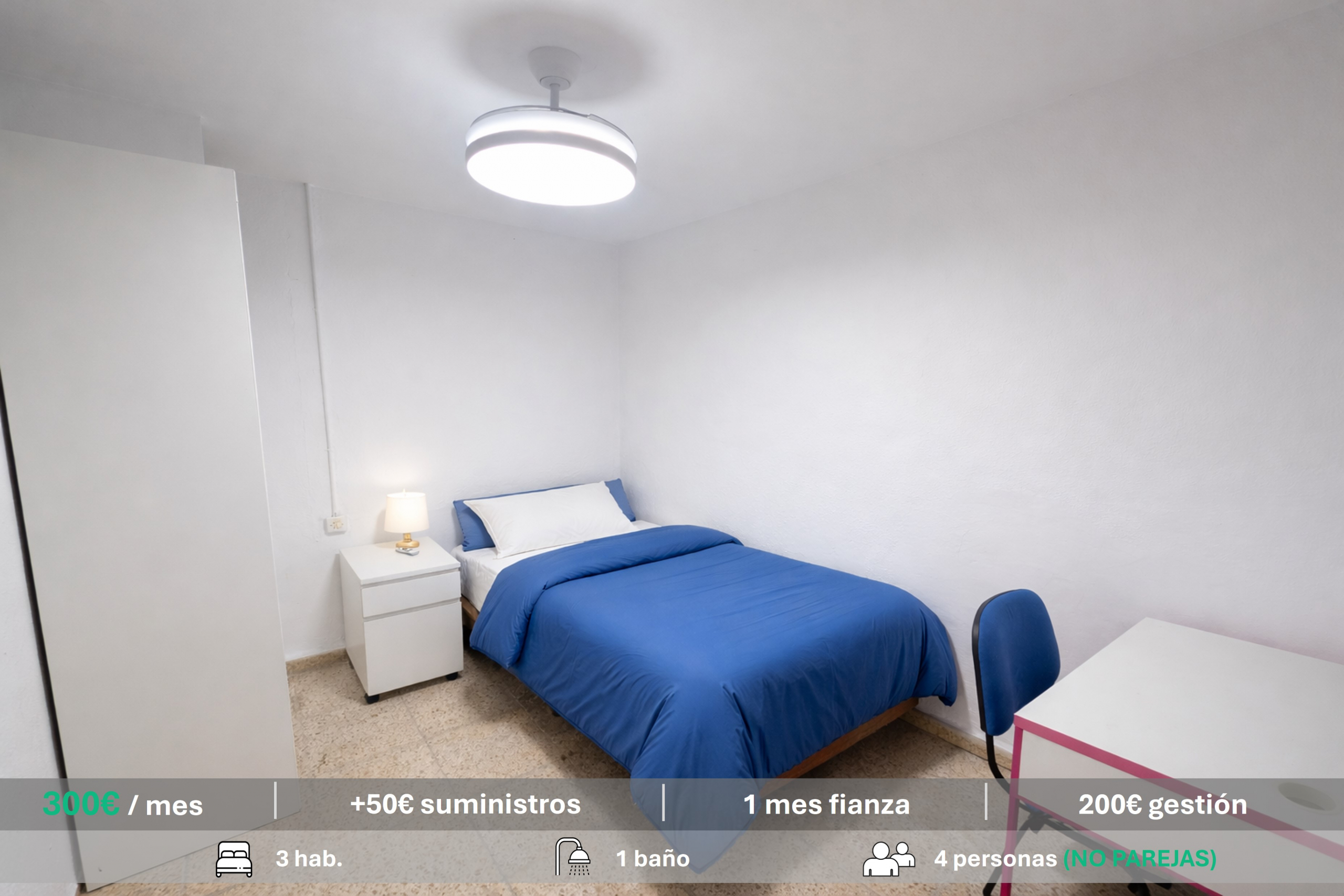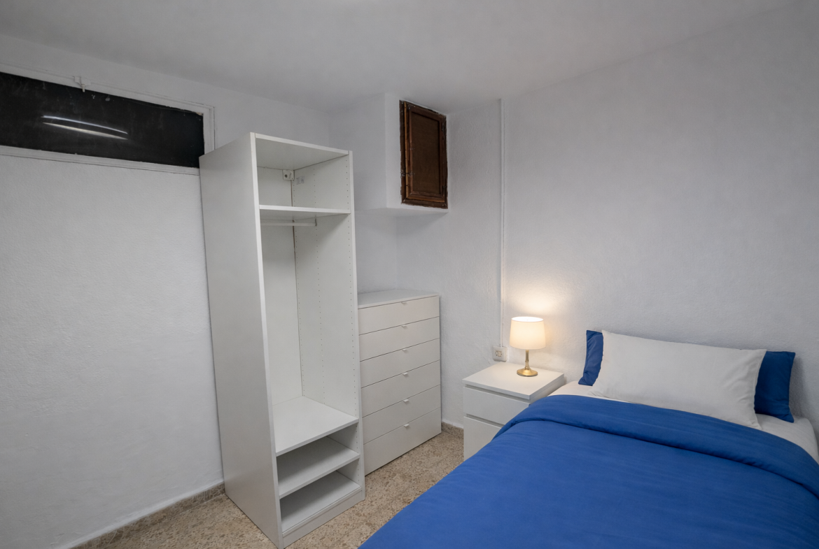 - ✓ Cama individual de 105 cm con colchón de alta calidad, armario, escritorio con silla, ventilador de techo