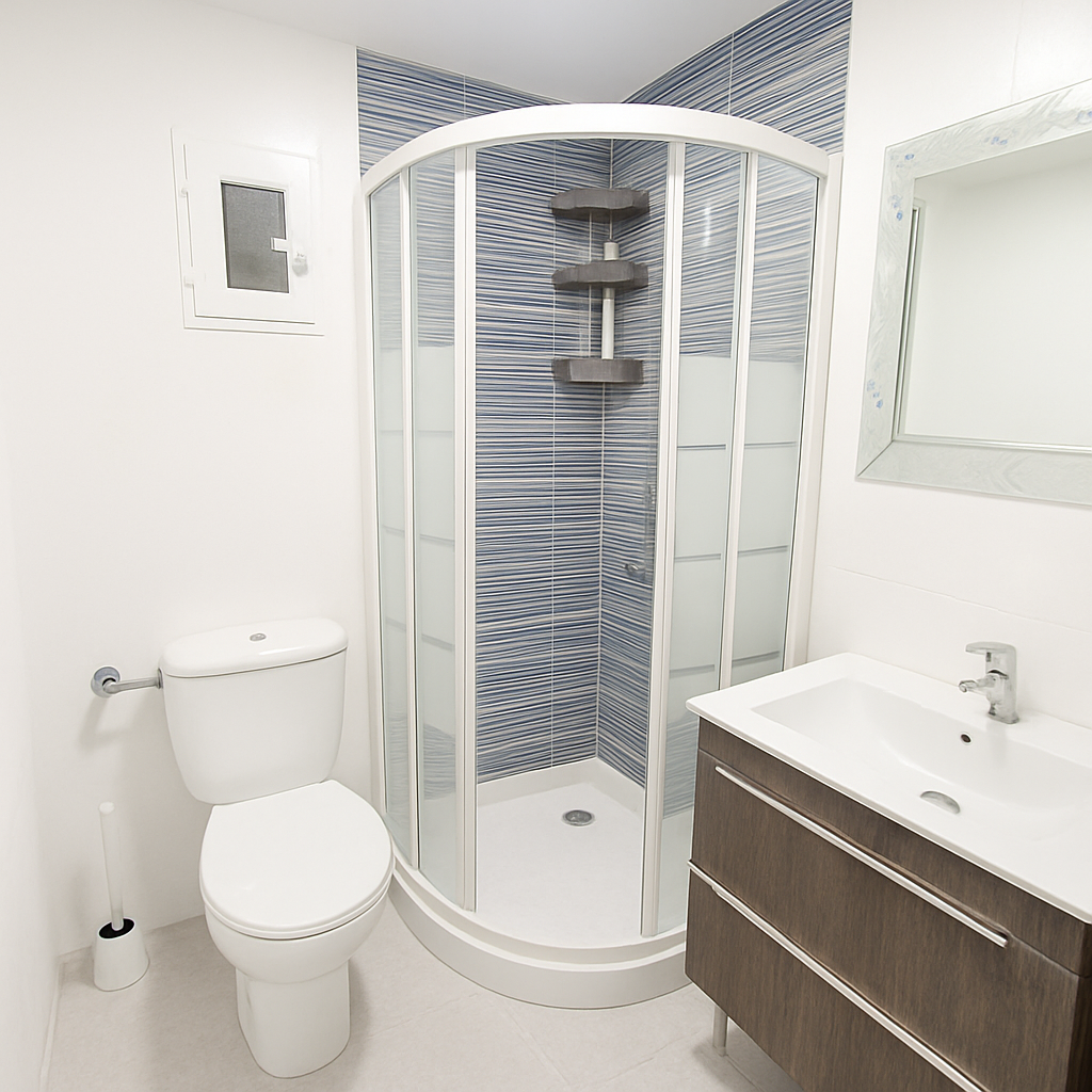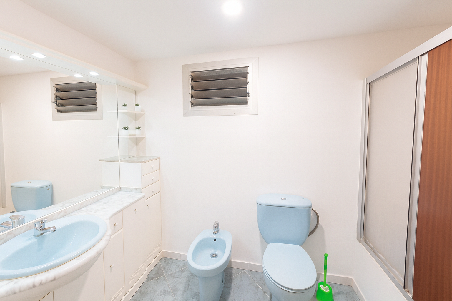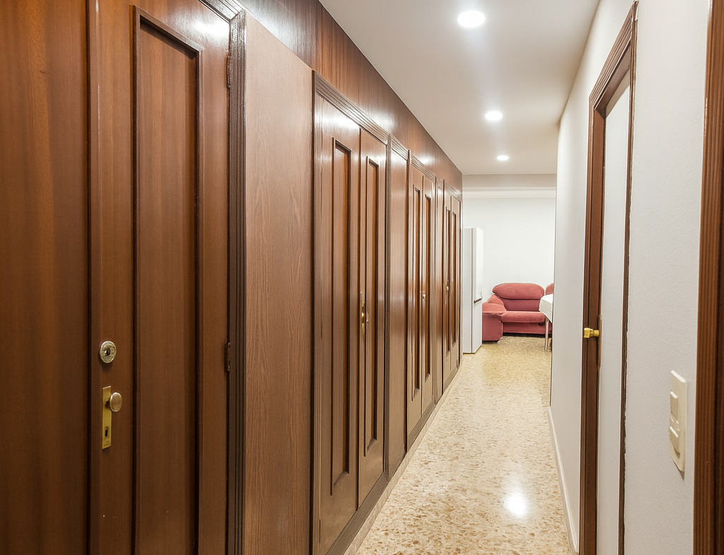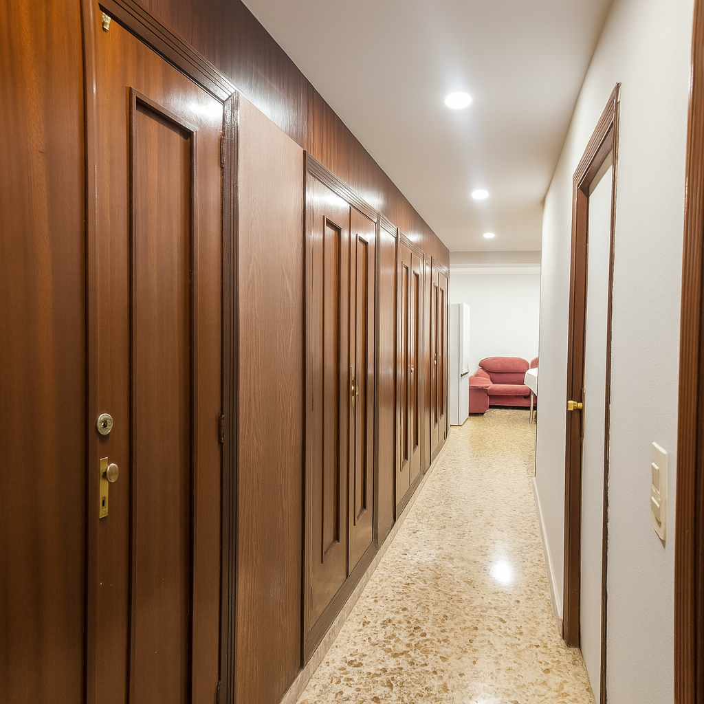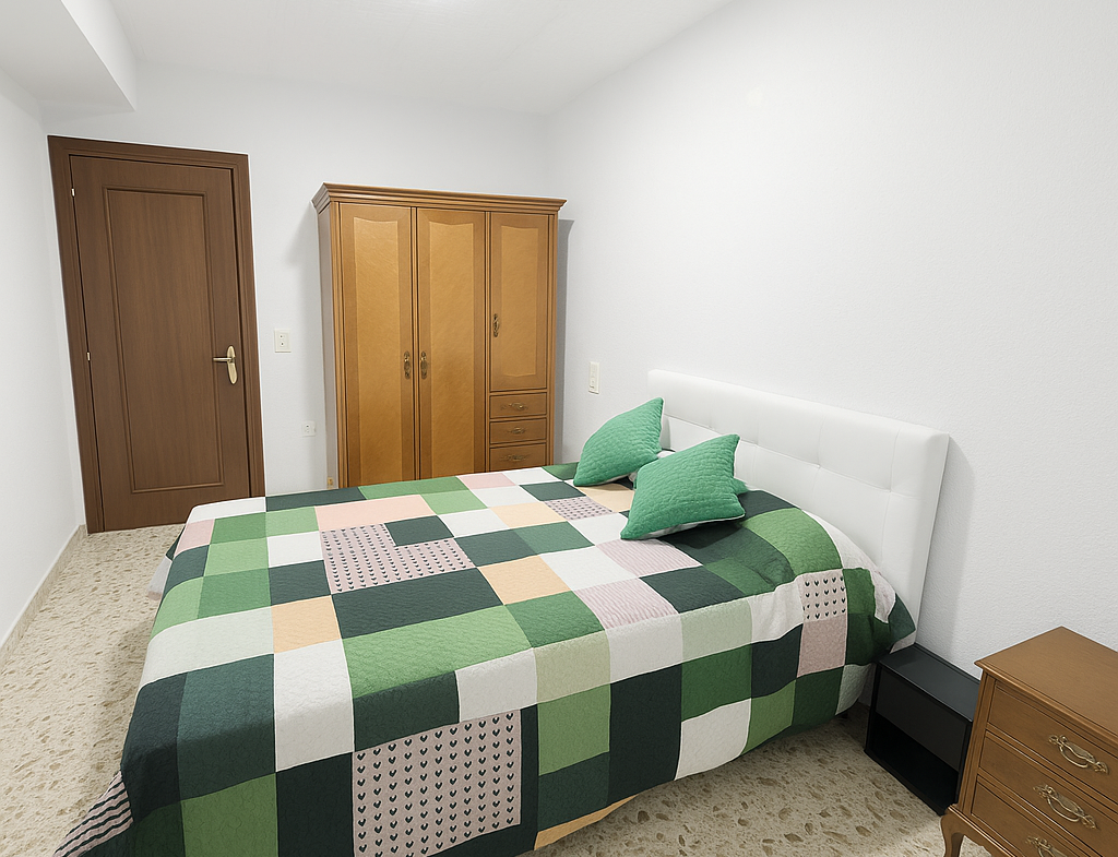 • Cama matrimonio 135 cm, 2 armarios (uno en habitación, otro en pasillo), escritorio con silla, aire acondicionado