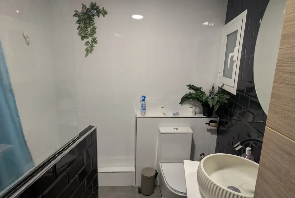 Piso compartido con 5 habitaciones y 3 baños. Cocina abierta al salón totalmente equipada: horno, microondas, 2 lavadoras y nevera. Situado en un primer piso sin ascensor. Convivencia joven y responsable.