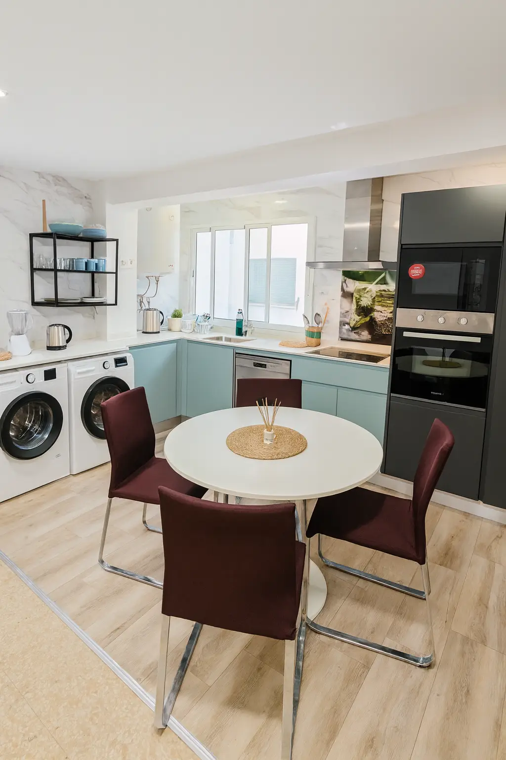 Piso compartido con 6 habitaciones y 3 baños. Cocina abierta al salón totalmente equipada: horno, microondas, lavadora, secadora y nevera. Situado en un primer piso sin ascensor. Convivencia joven y responsable.