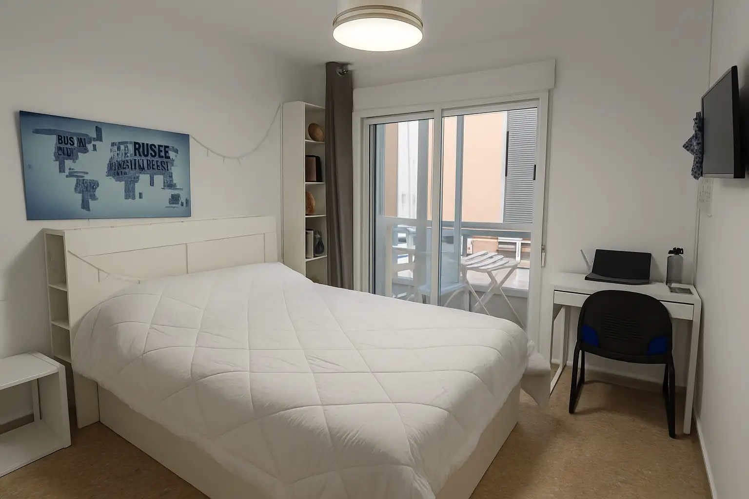 Exterior y luminosa. Dispone de terraza privada. Amueblada con cama de matrimonio , escritorio con silla, armario, ventilador de techo y televisión grande. Ideal para estudiar o teletrabajar en un espacio tranquilo.